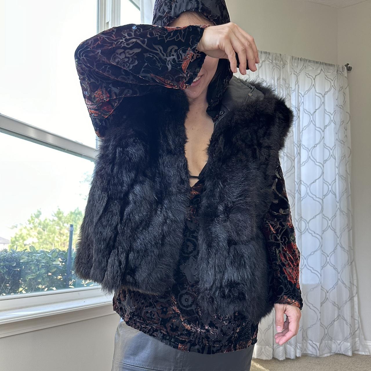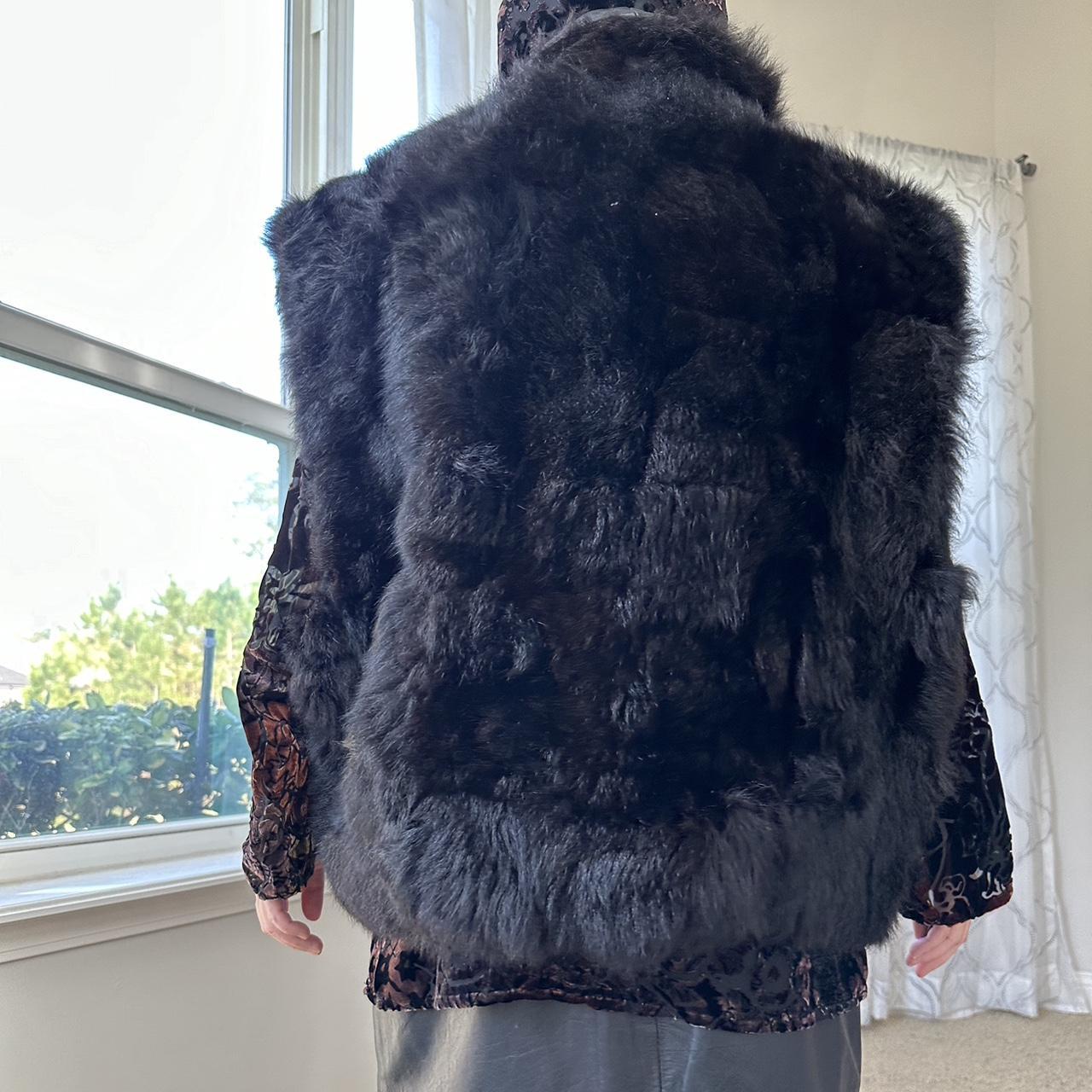 Thrifted fur vest in black. May be worn oversized but please check measurements.
