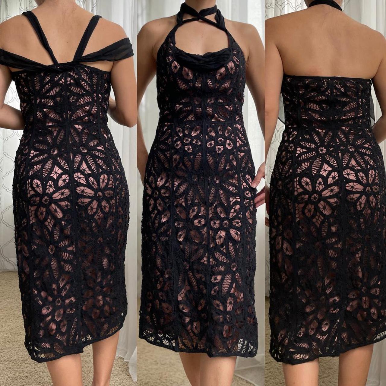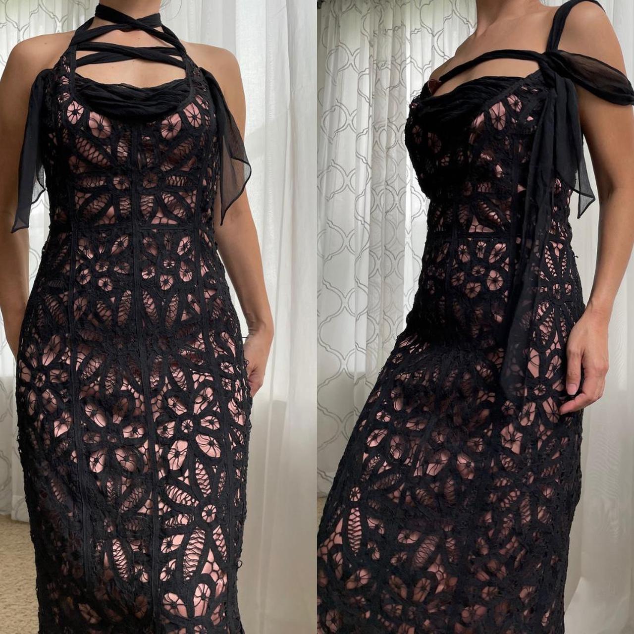 Deadstock. Lace black dress with adjustable shoulder/neck ties.