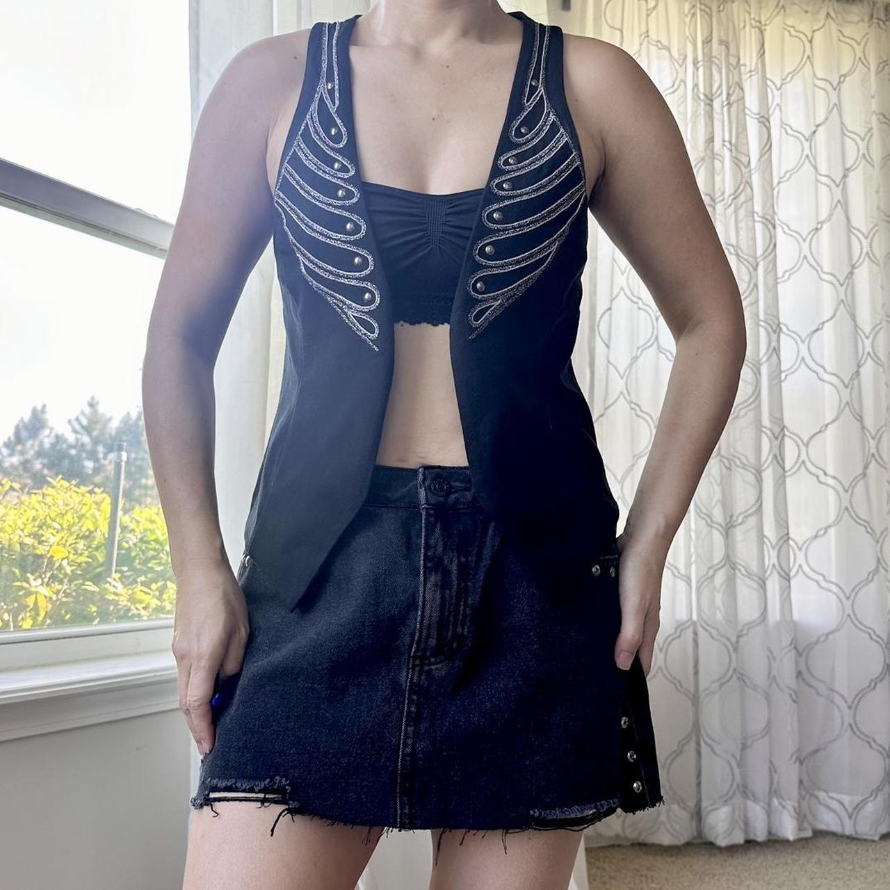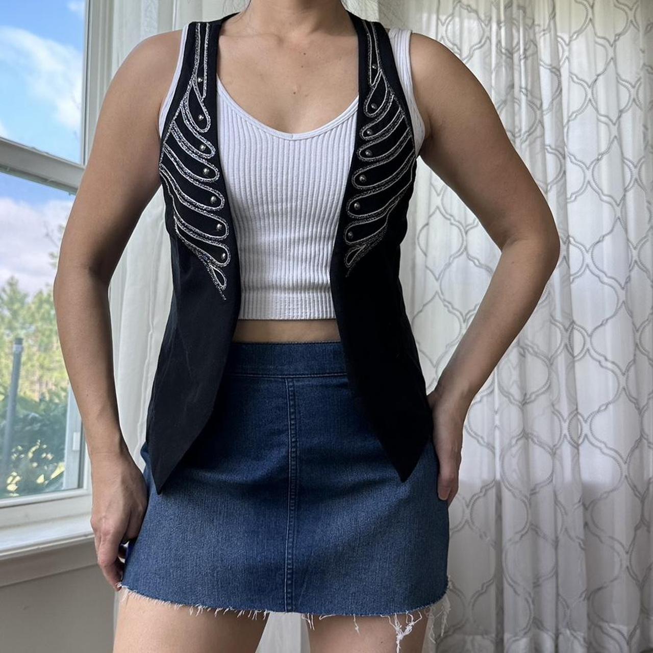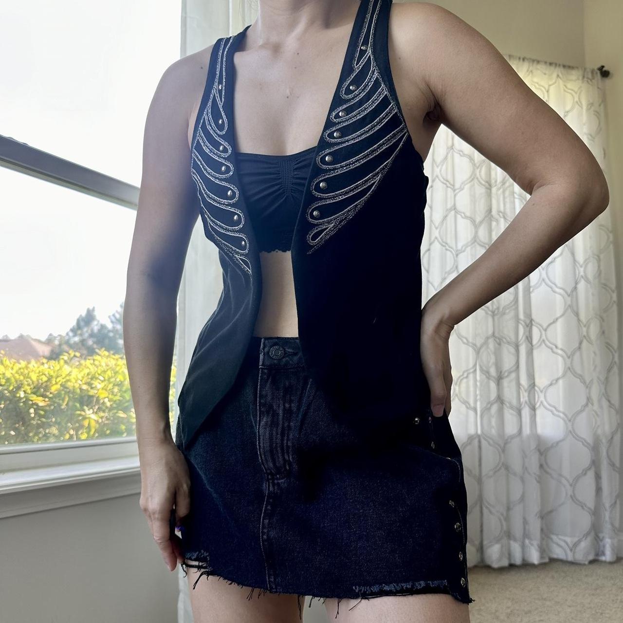 Black vest with silver metallic loop wings design with gunmetal round studs.